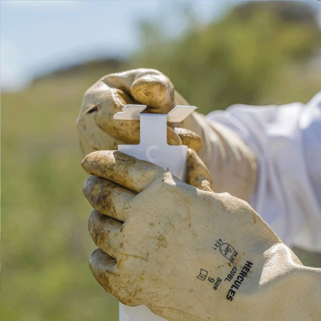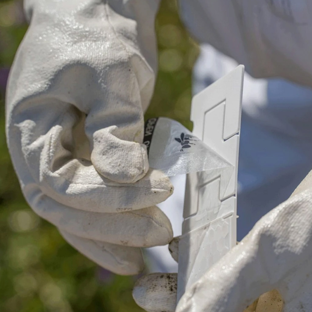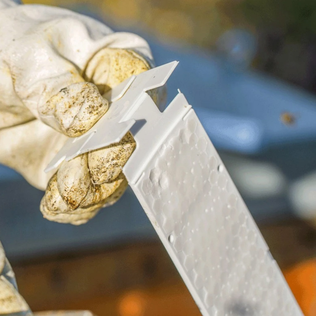 Každý proužek lze snadno přizpůsobit pomocí ohybných zarážek pro různé rozměry úlů (Langstroth, Dadant, 39x24 apod.).