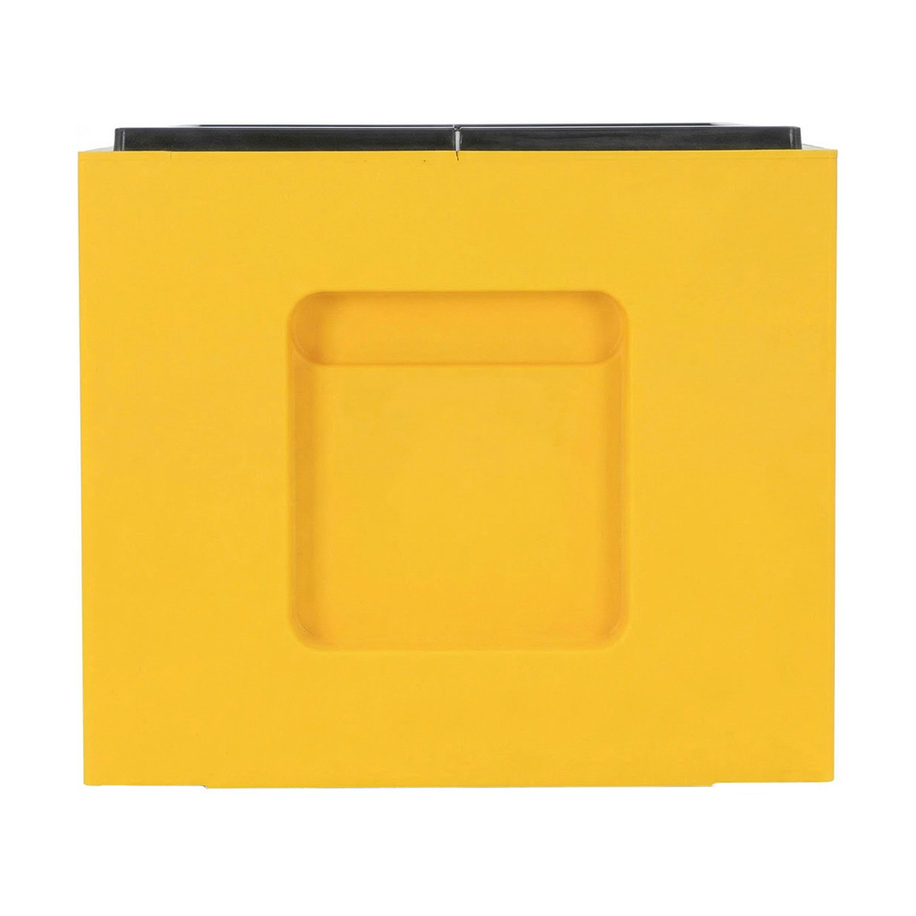 Nástavek si představte jako jedno „patro" úlu, do kterého se vkládají rámky, na nichž včely staví dílo, ukládají med a pyl nebo kde matka klade vajíčka. Tento nástavek je vyrobený z polystyrenu, takže je oproti dřevěnému hodně lehký a snadno se s ním pracuje. Zároveň polystyren dobře drží teplo, což včelám pomáhá hlavně na jaře a na podzim, kdy venku ještě bývá chladno. Vejde se do něj 10 rámků o velikosti 39 x 24 cm, což je běžná česká míra. Po okrajích má plastovou lištu, která vám usnadní jednotlivá patra od sebe oddělit pomocí včelařského rozpěráku. Nástavek má také dva otvory, díky kterým ho můžete v případě potřeby rozdělit přepážkou na dvě části, což se hodí, když chcete vytvořit nové včelstvo. Žlutá barva není jen ozdoba, ale pomáhá včelám lépe poznat svůj domov. Povrch je nalakovaný, takže vydrží déle venku na stanovišti.