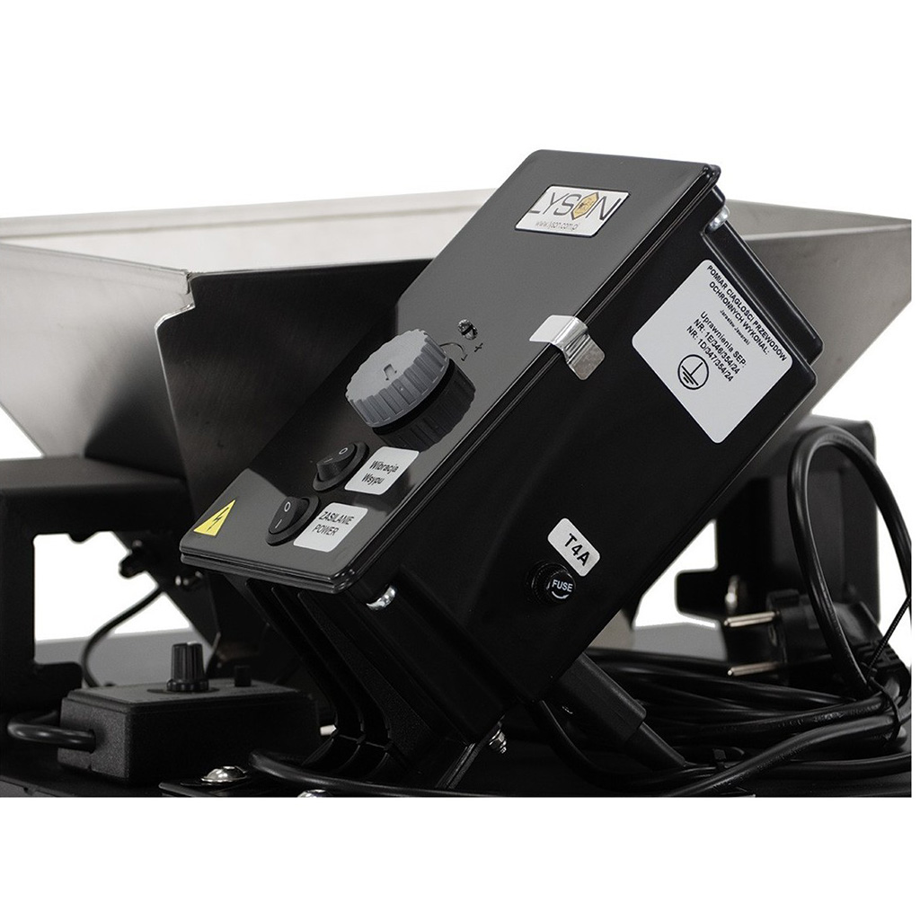 Když včely nosí do úlu pyl, chytáme ho pomocí speciálních pylových pastí, které jim jemně seškrábnou pylová zrnka z nožiček. Jenže tenhle nasbíraný pyl není úplně čistý. Jsou v něm kousíčky vosku, drobné nečistoty z úlu nebo třeba prach. A právě od toho je tady čistička pylu. Funguje jednoduše. Do zásobníku nahoře nasypete nasbíraný pyl a zapnete stroj. Pyl propadává přes dvě síta, která mají různě velké dírky. Větší nečistoty zachytí první síto, menší odstraní druhé. Navíc celou dobu profukuje pyl proud vzduchu z ventilátoru, který odfoukne lehké nečistoty pryč. Sílu toho vzduchu si můžete sami nastavit otočným kolečkem podle toho, jak moc znečištěný pyl máte. Za hodinu takhle vyčistíte až 70 kilogramů pylu, což je opravdu hodně. Výsledkem je krásně čistý pyl, který mnohem lépe vypadá a dá se prodávat za lepší cenu. Pokud chcete pyl prodávat, je dobré ho nejdřív usušit v sušičce a potom vyčistit právě touto čističkou. Obsluha je jednoduchá a žádné speciální znalosti k tomu nepotřebujete.