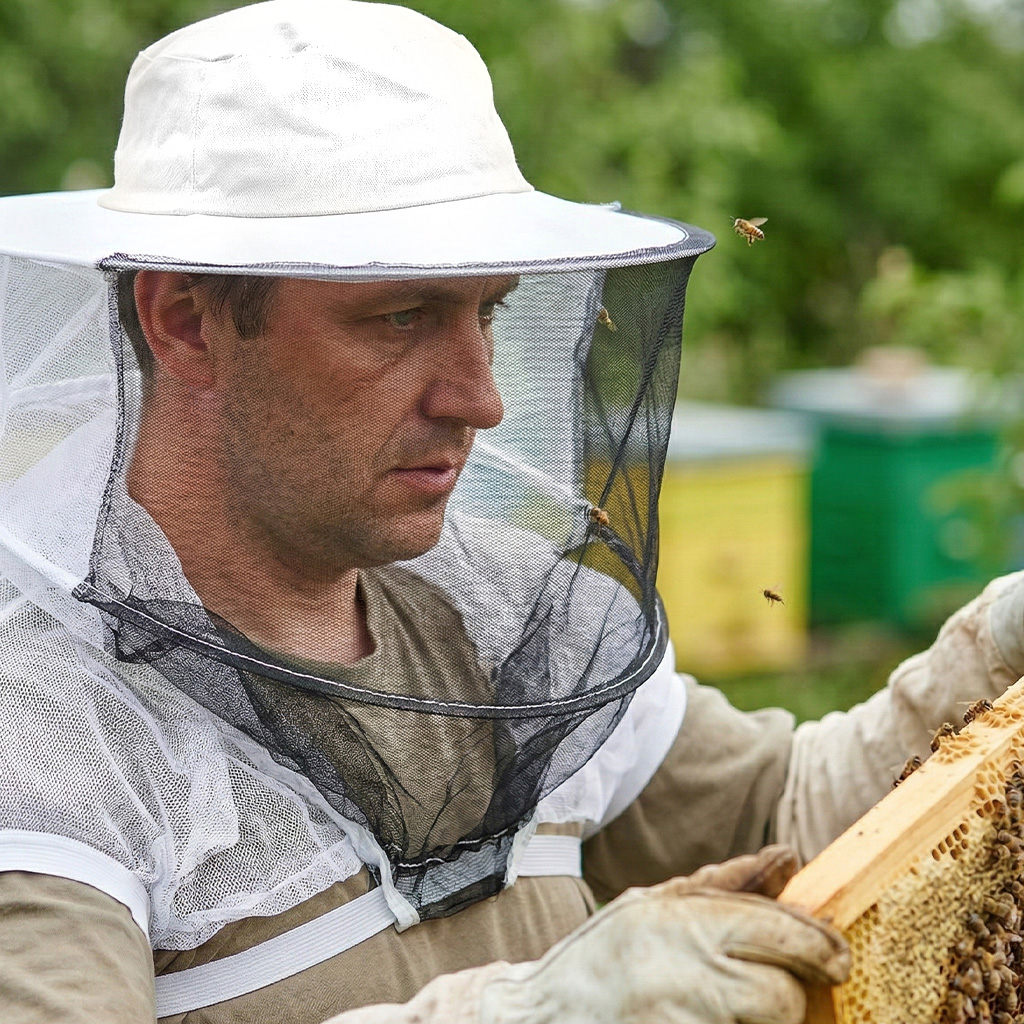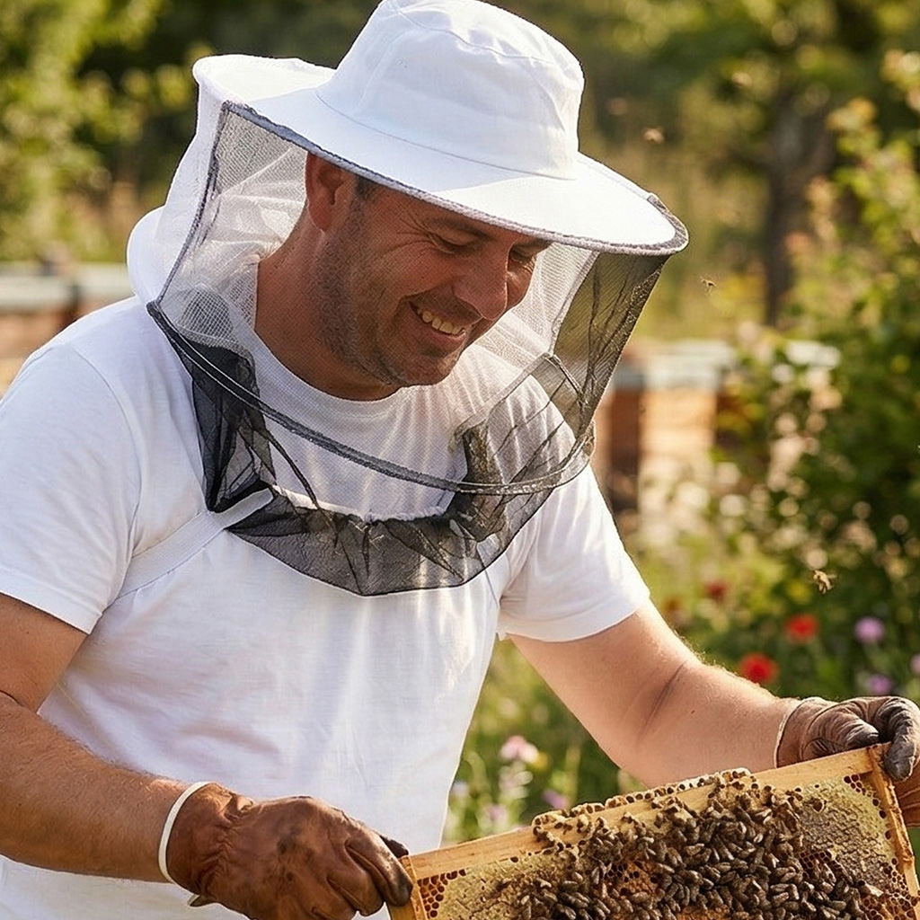 Tento včelařský klobouk oceníte zejména při delší práci u úlů, kdy se běžné závoje často vyhrnují a otvírají cestu včelám k obličeji a krku. Díky prodloužené síťce se stahovací gumou, kterou si jednoduše přetáhnete přes ruce, zůstává ochrana po celou dobu na svém místě. Klobouk je vyroben z bavlny, takže i v teplých letních dnech zajišťuje dostatečné odvětrávání. Černo-bílá síťka nabízí překvapivě dobrý výhled a univerzální velikost sedí prakticky každému. Ideální volba pro ty, kteří hledají spolehlivou ochranu bez nutnosti pořizovat celý včelařský oblek.