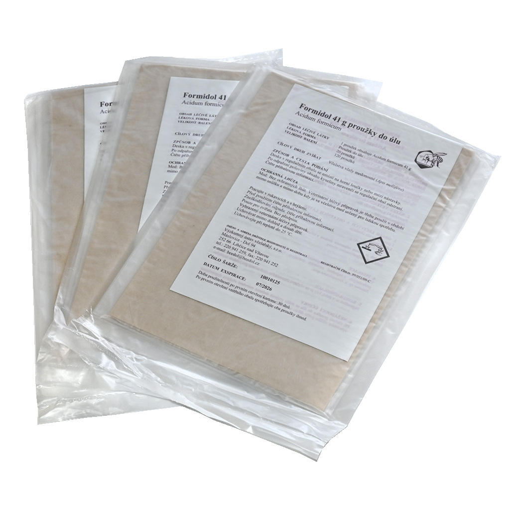 Formidol je léčivo pro včely ve formě papírové desky napuštěné kyselinou mravenčí. Tuto desku jednoduše vložíte do úlu a kyselina se z ní pomalu odpařuje. Vznikající páry pak hubí roztoče Varroa – drobné parazity, kteří se přisávají na včely a postupně celé včelstvo oslabují. Kromě roztočů Formidol pomáhá i proti dalším nemocem, jako je nosematóza (onemocnění trávicího ústrojí včel) nebo zvápenatění plodu (plíseň, která napadá včelí larvy).