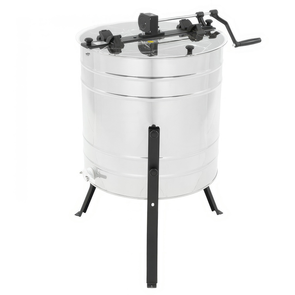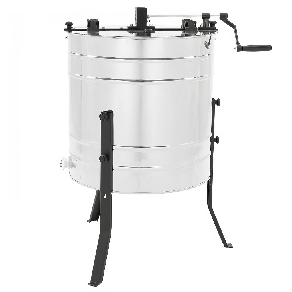 Tangenciální medomet s ručním pohonem pro 4 plásty současně. Koš o rozměru 35 × 45 cm umožňuje vložení rámků s max. rozměrem 44,8 × 35 cm. Nízké rámky (39 × 15, 39 × 17, Langstroth 159, Optimal 42 × 17) lze vkládat po dvou do jedné pozice koše. Nerezový buben o průměru 60 cm zajišťuje odolnost vůči kyselému prostředí medu. Výpustný kohout v 36 cm od země vyhovuje standardním filtračním nádobám. Kompletní záruční i pozáruční servis včetně dodávky náhradních dílů.