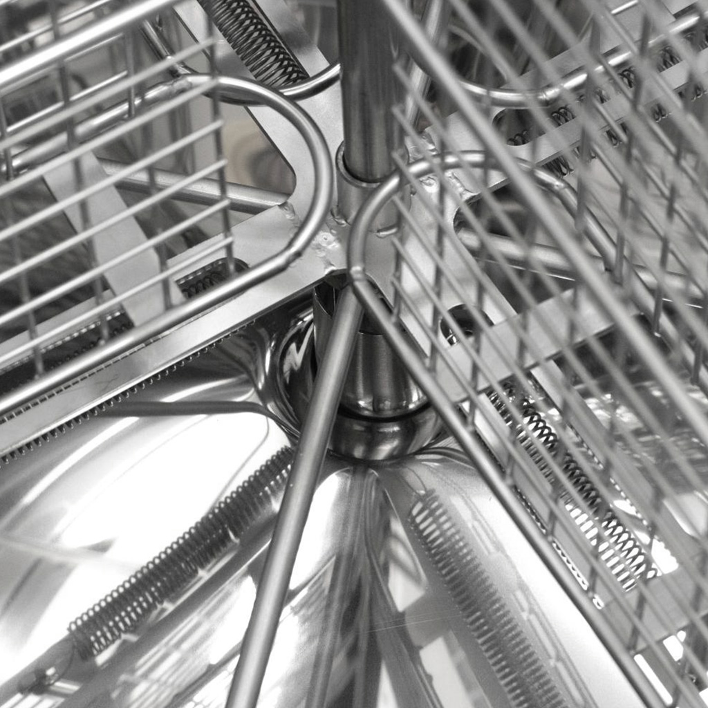 Celý buben je vyrobený z nerezové oceli, takže se po práci snadno umyje vodou a nebude rezivět. Dno bubnu je zúžené, aby med hezky stékal ke kohoutku a nikde se nezdržoval. Když otevřete víko, koš se automaticky zastaví, takže nehrozí žádné zranění.