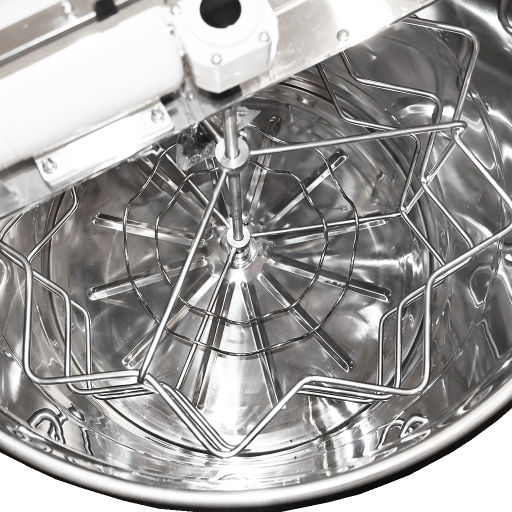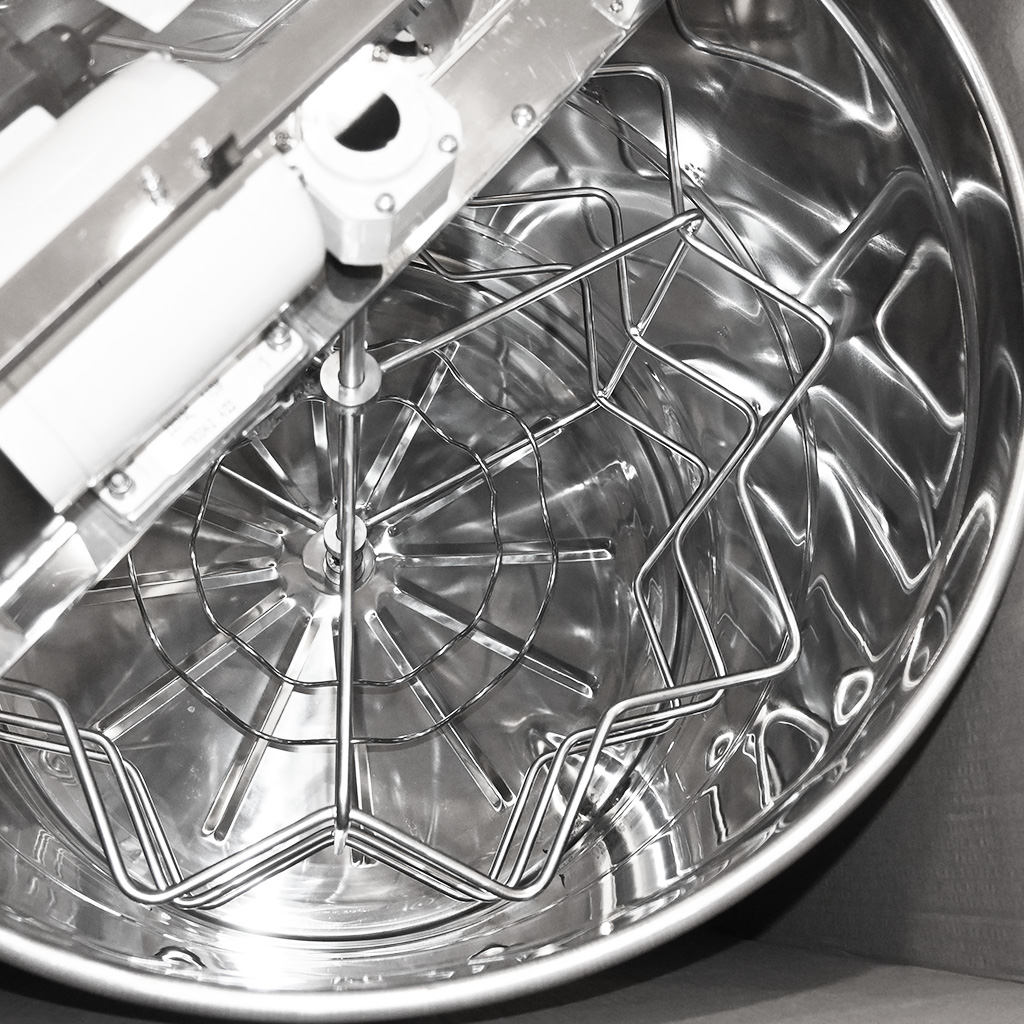 Zdravé a nepoškozené plásty jsou pro včelaře zásadní – vracíte je zpět do včelstva a včely mohou rychle pokračovat v práci. Koš je proto osazen hustou sítí nerezových drátů, která rozkládá odstředivou sílu na větší plochu. Tím se minimalizuje riziko zařezávání drátů do vosku a plásty po vytočení zůstávají v dobré kondici.
