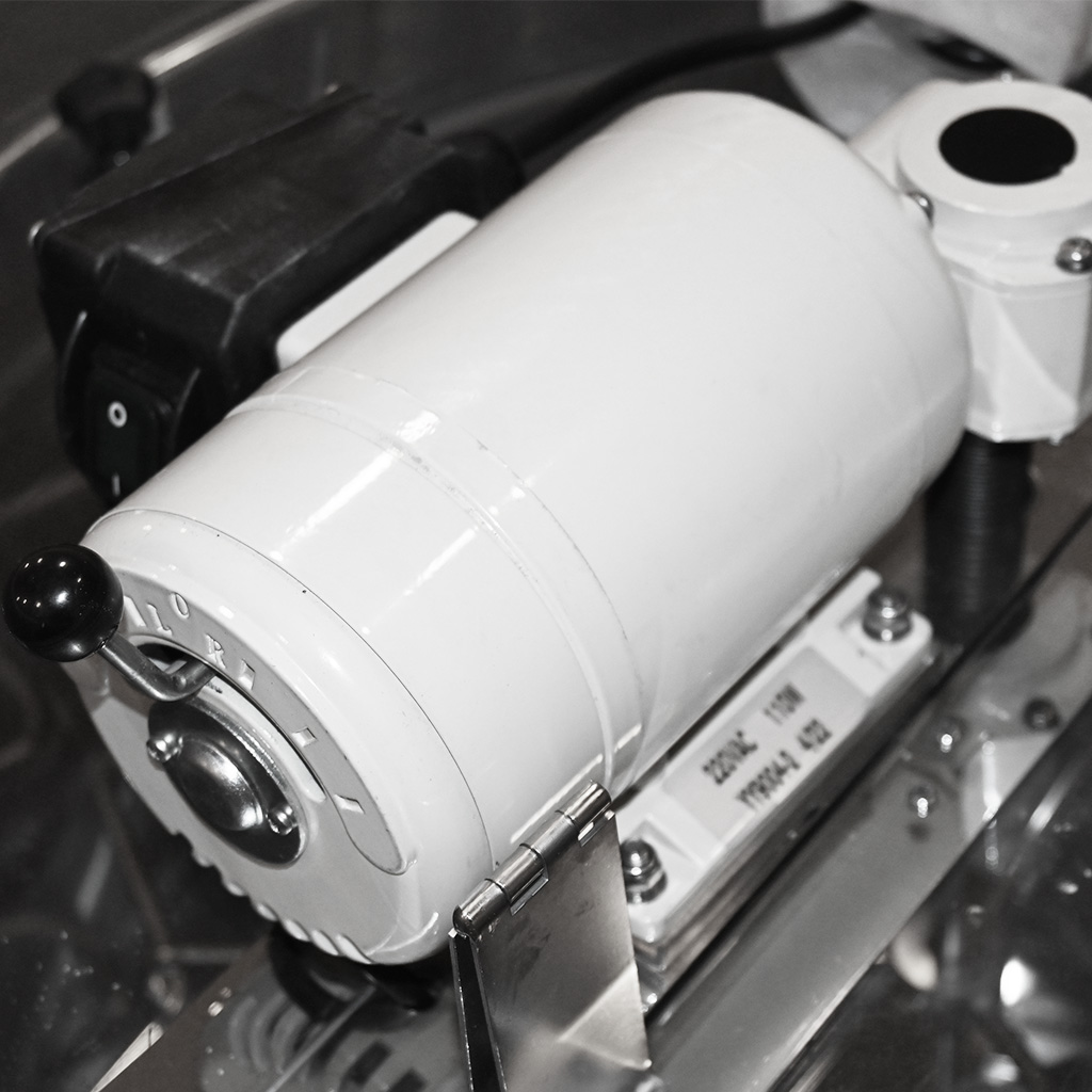 Motor o výkonu 110 W nabízí plynulou manuální regulaci otáček a možnost změny směru otáčení. Protože včely staví buňky v mírném sklonu, obousměrný chod pomáhá med lépe uvolnit i z hlouběji uložených buněk. Pohonná jednotka je umístěna nahoře na pevné liště, což usnadňuje rychlou demontáž koše i motoru a zkracuje čas potřebný na čištění po medobraní.