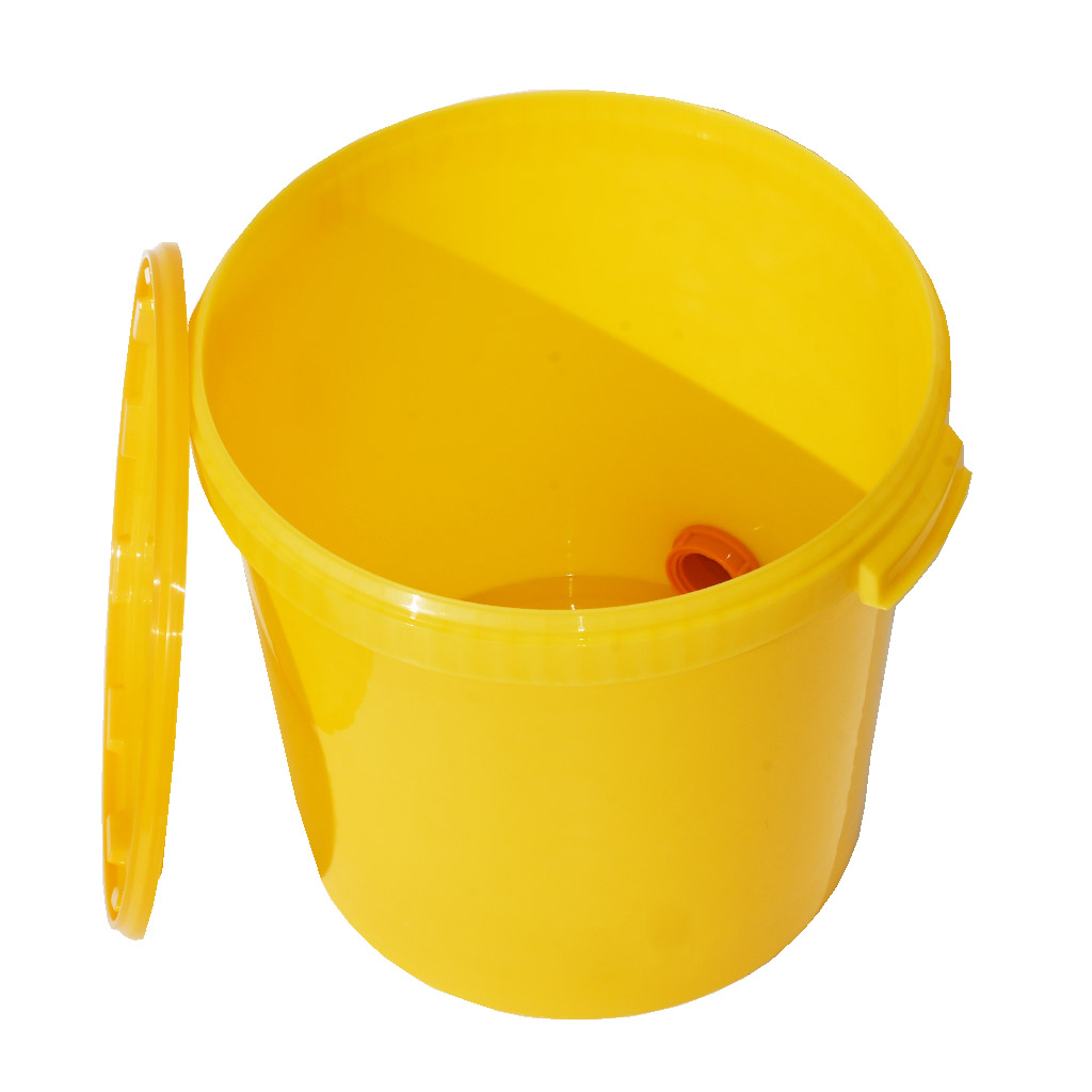 Robustní žlutá stáčecí nádoba na med od německého dodavatele včelařských potřeb. Nádoba je vyrobená z kvalitního, tvarově stálého plastu vhodného pro styk s potravinami. I při plném naplnění si drží pevný tvar a nekroutí se, takže se s ní dobře manipuluje při práci v medárně. Objemově pojme až 40 kg medu (ISO objem 31,5 l). Díky integrované výpusti můžete med stáčet čistě a plynule přímo do sklenic. Ventil je snadno odnímatelný a spolu s nádobou se jednoduše umývá, což podporuje správnou hygienu při zpracování medu.