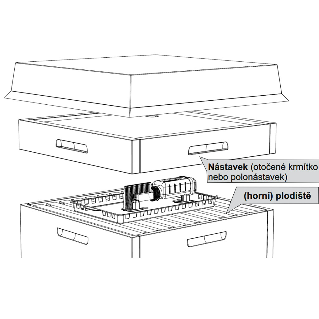 | Umístění v úlu | Na horní loučky rámků (prázdný nástavek / krmná komora) |