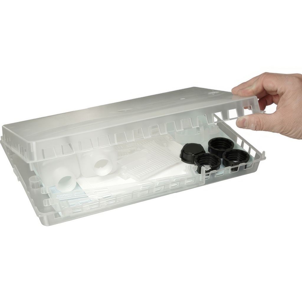 Bezpečné provedení: Celý systém je usazen ve stabilní vaničce, která slouží jako pojistka proti úniku náplně. V případě nehody zachytí kapalinu a chrání tak včely i vnitřní části úlu před potřísněním.