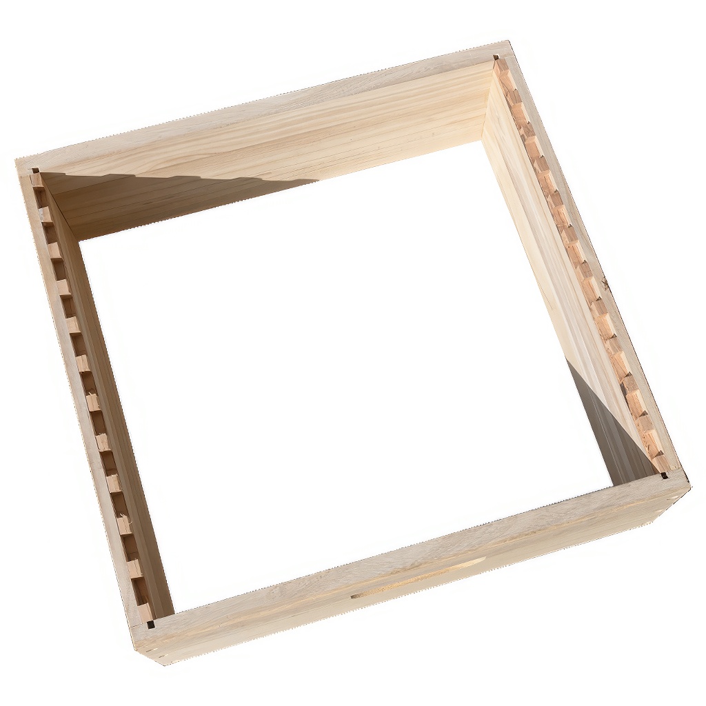 Nástavek je dřevěná krabice bez dna a víka, která se dává na úl a slouží včelám jako prostor pro ukládání medu. Tento konkrétní nástavek patří do systému Dadant US a je nižší než hlavní část úlu, kde včely bydlí. Díky nižší výšce (141 mm) nebude tak těžký, až ho budete sundávat plný medu, což při práci na včelnici opravdu oceníte.