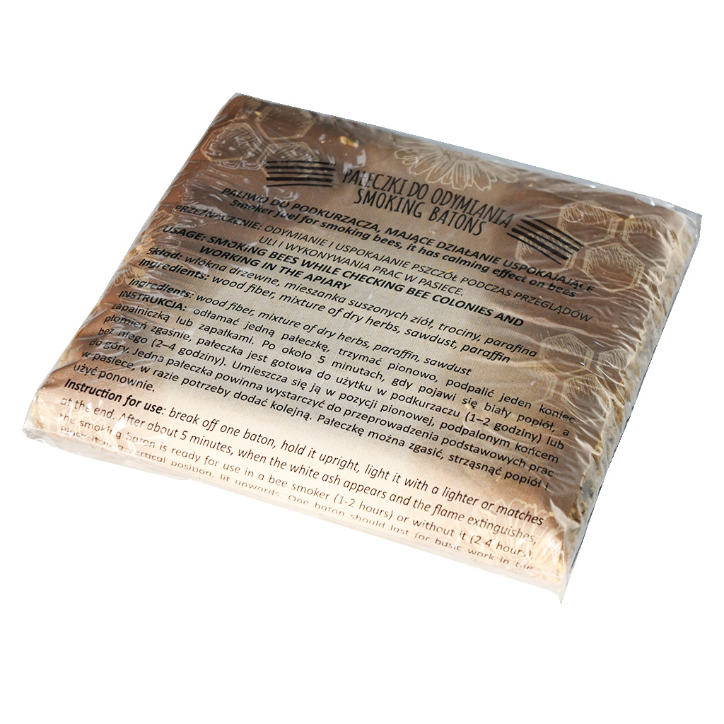 Když otevřete úl a chcete, aby včely zůstaly klidné, používá se na to speciální nástroj, kterému se říká dýmák. Je to vlastně taková plechová nádobka s měchem, ze které fouká kouř. A právě tyto tyčinky jsou palivo, které do dýmáku vložíte a zapálíte. Kouř včelám signalizuje, že se mají napít medu a zklidnit, takže s nimi pak můžete v klidu pracovat. Jedna tyčinka vám vydrží hořet až 3 hodiny, což je dost i na pořádně dlouhou prohlídku. Když skončíte dříve, tyčinku jednoduše vytáhnete a necháte ji sama dohasit na bezpečném místě. Nelejte na ni vodu, protože by se pak už špatně zapalovala. Zbytek si schováte a příště ho zase použijete. V jednom balení najdete šest tyčinek, takže vám vydrží opravdu dlouho.