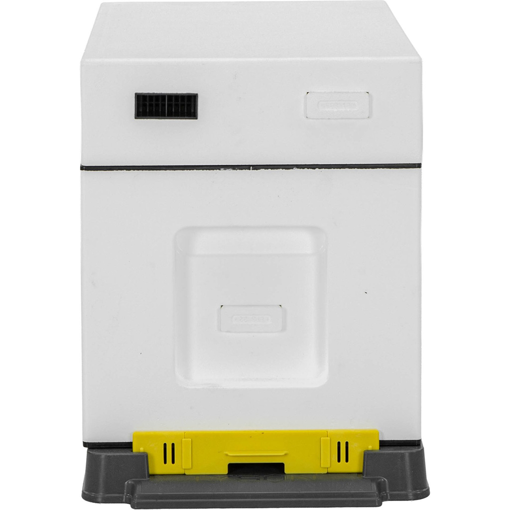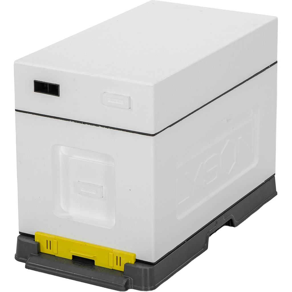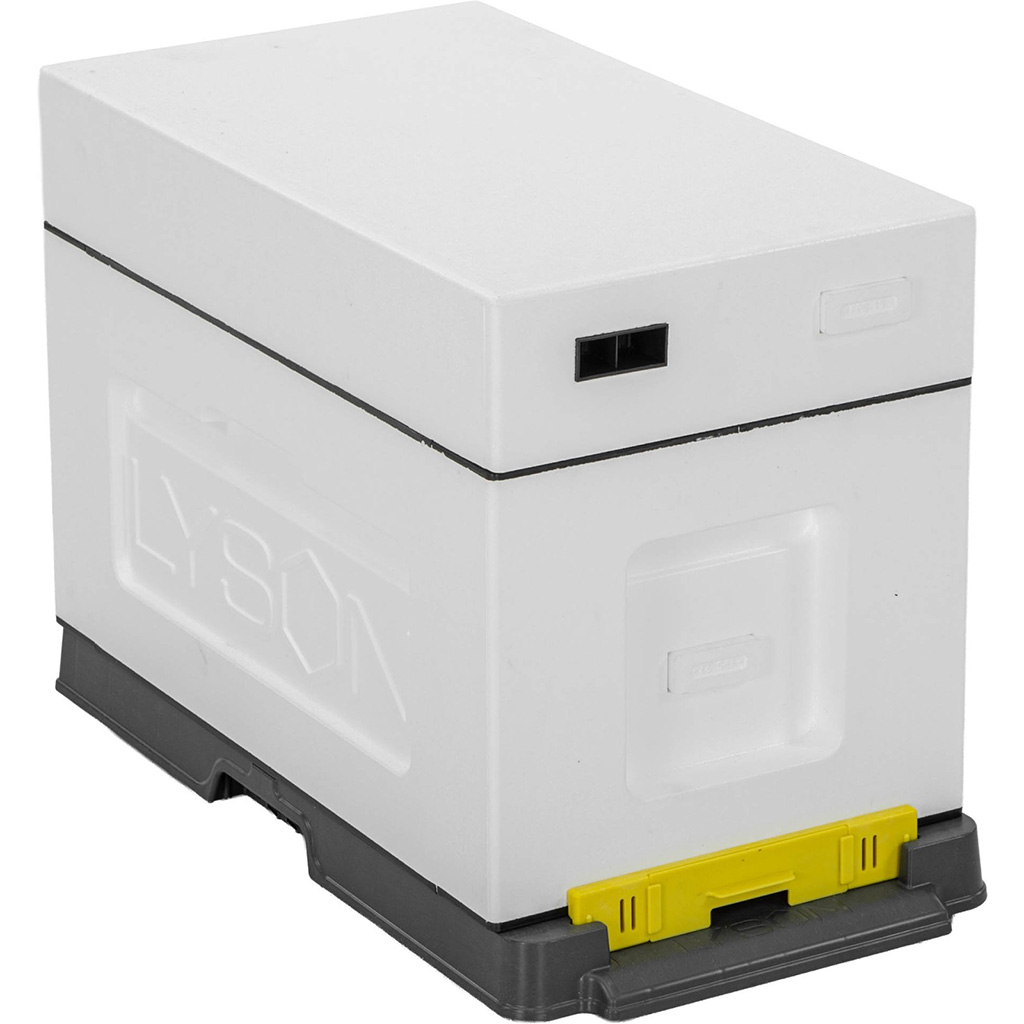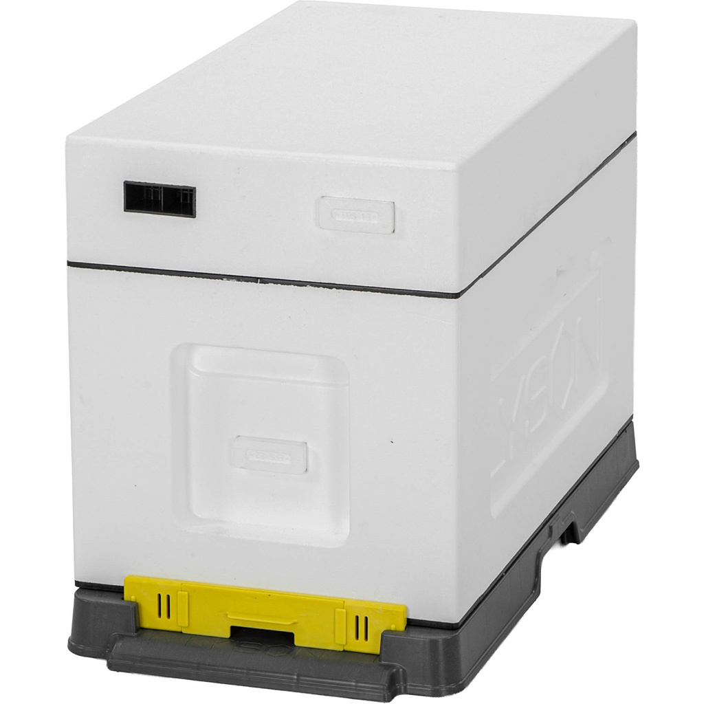 Tento plemenáč je vyrobený ze Styroduru, což je lehký materiál, který skvěle drží teplo – podobně jako polystyren, který znáte třeba ze zateplení domů, ale je mnohem tvrdší a odolnější. Pro včely to znamená, že i malé včelstvo v něm dokáže udržet potřebné teplo pro plod, aniž by se vyčerpávalo. Na jaře se díky tomu oddělek rychleji rozvine a v zimě v něm můžete bezpečně přezimovat záložní matku s hrstkou včel.