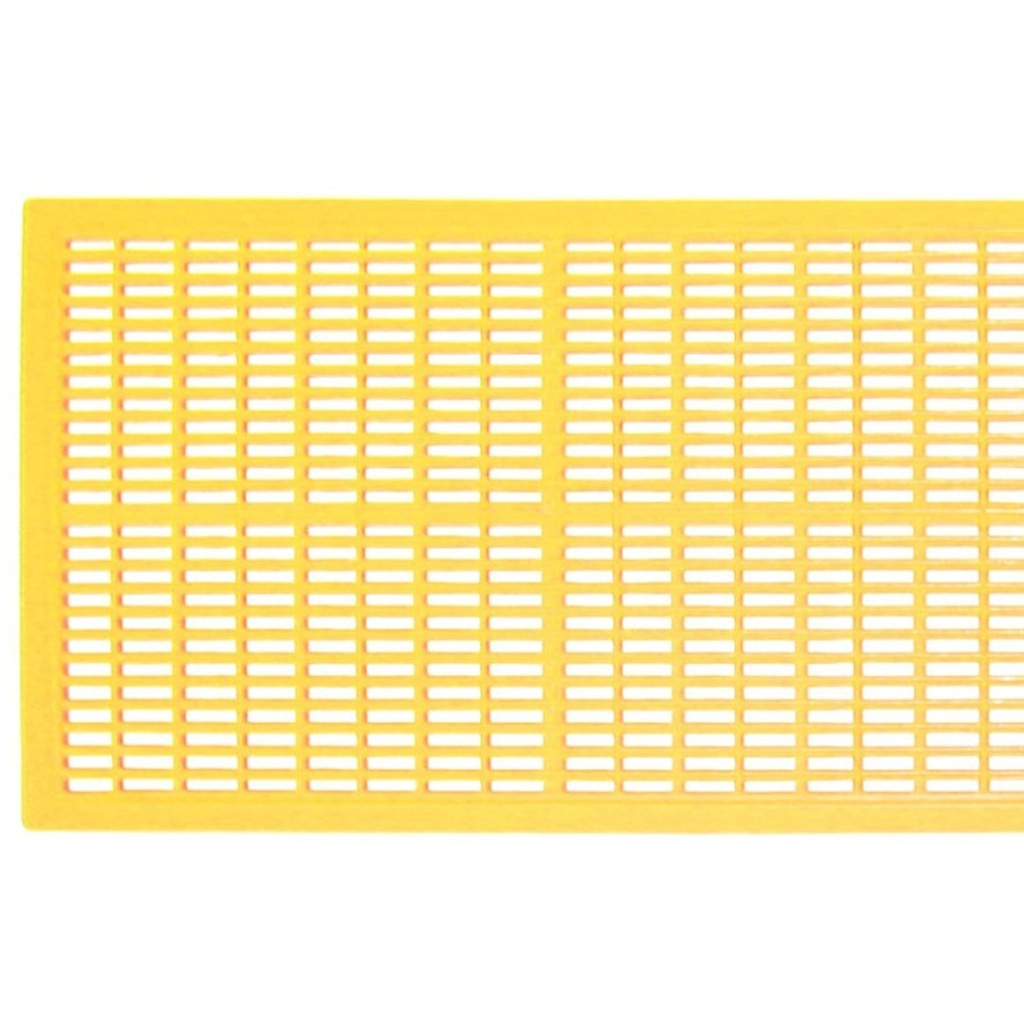 Tato mřížka je takzvaně široká, má rozměry 403 x 148 mm, takže se hodí na úly s větším česnem. Montáž je jednoduchá, mřížku prostě vložíte do pylochytu, což je celé zařízení, které se skládá z mřížky a zásuvky na pyl.