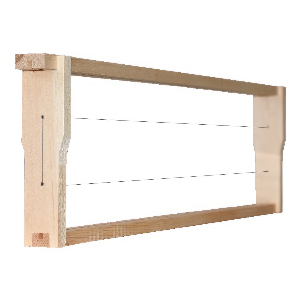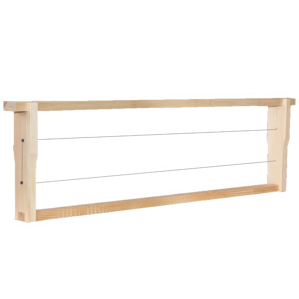 Námi nabízené rámky z kvalitního dřeva, které neobsahuje příliš suků a loučky jsou široké 10 mm. Šířka louček je 25 mm. Horní loučka má tloušťku 10 mm. Rámky mají dlouhou životnost. Rámky mají již předvrtané otvory pro vodorovné drátkování. Rámky jsou vypletené nerezovým drátkem a opatřené zděřemi.