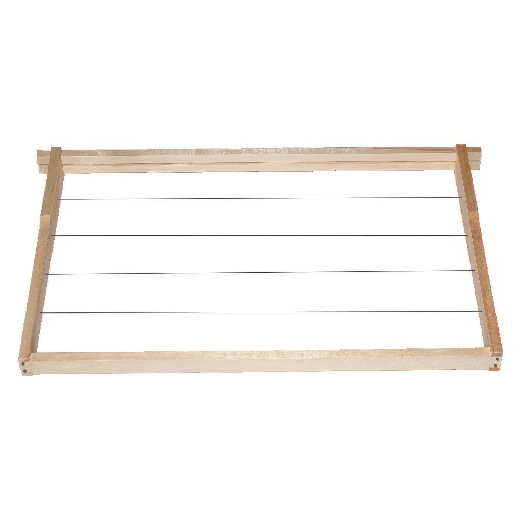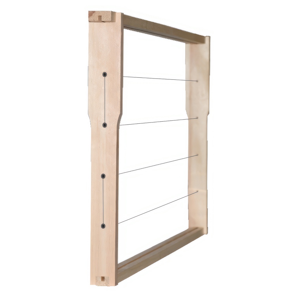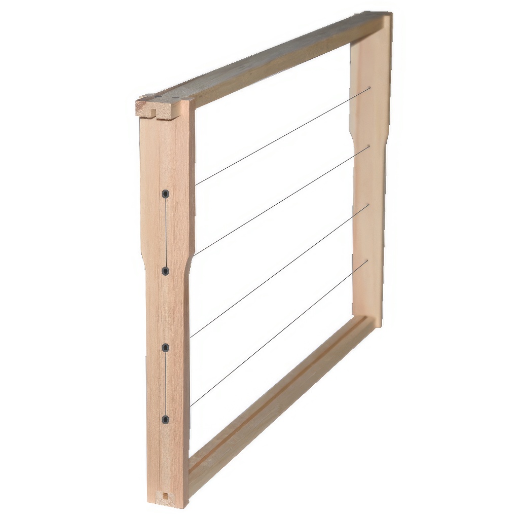 Námi nabízené rámky z kvalitního dřeva, které neobsahuje příliš suků a loučky jsou široké 10 mm. Šířka louček je 25 mm. Horní loučka má tloušťku 10 mm. Rámky mají dlouhou životnost. Rámky mají již předvrtané otvory pro vodorovné drátkování. Rámky jsou vypletené nerezovým drátkem a opatřené zděřemi.