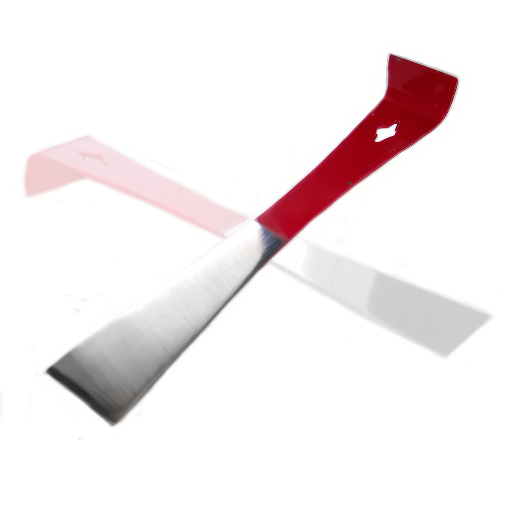Ať už obsluhujete pár úlů na zahradě, nebo vedete větší provoz, tento model se rychle stane každodenním pomocníkem. Je navržen pro oboustranné použití: rovný klínovitý konec se hodí k páčení nástavků a seškrabávání vosku či propolisu, zatímco zahnutý konec s ostřím usnadní bezpečné uvolnění a vypáčení rámků. Otvor v těle rozpěráku umožňuje praktické zavěšení na včelařský stolek nebo háček, takže ho máte během práce stále po ruce.