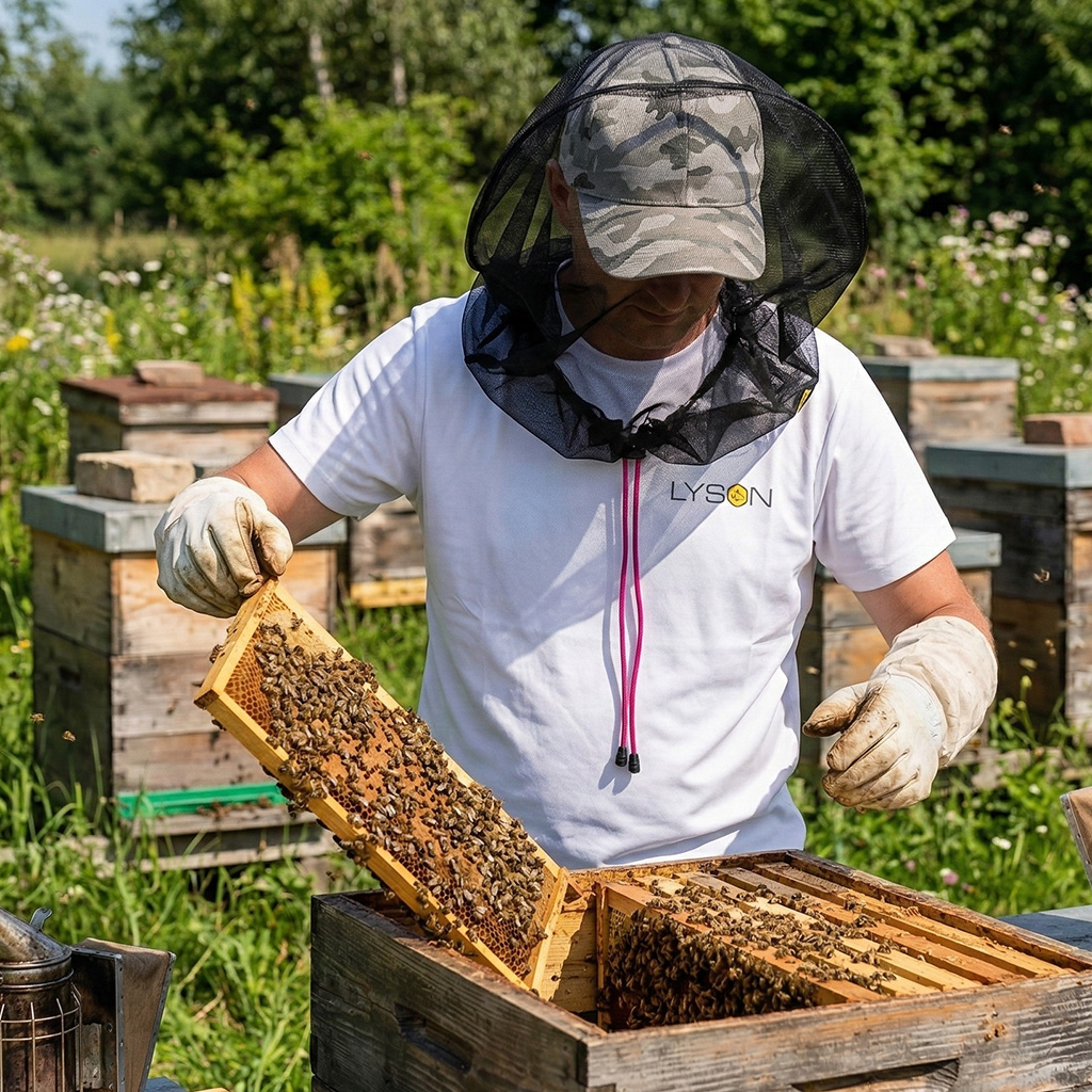 Síťku snadno nasadíte na většinu včelařských i běžných klobouků se širokou krempou. Právě krempa pomáhá držet síťovinu v bezpečné vzdálenosti od obličeje i při předklonu nad rámky. Lysoň je mezi včelaři prověřená značka a její výrobky jsou známé dobrou výdrží. Materiál síťky odolává běžnému opotřebení i zachycení o hrany nástavků, takže vám bude sloužit při každodenní práci ve včelstvu. Výsledkem je bezpečnější a zároveň příjemnější prohlídka a navíc bez zbytečného stresu.