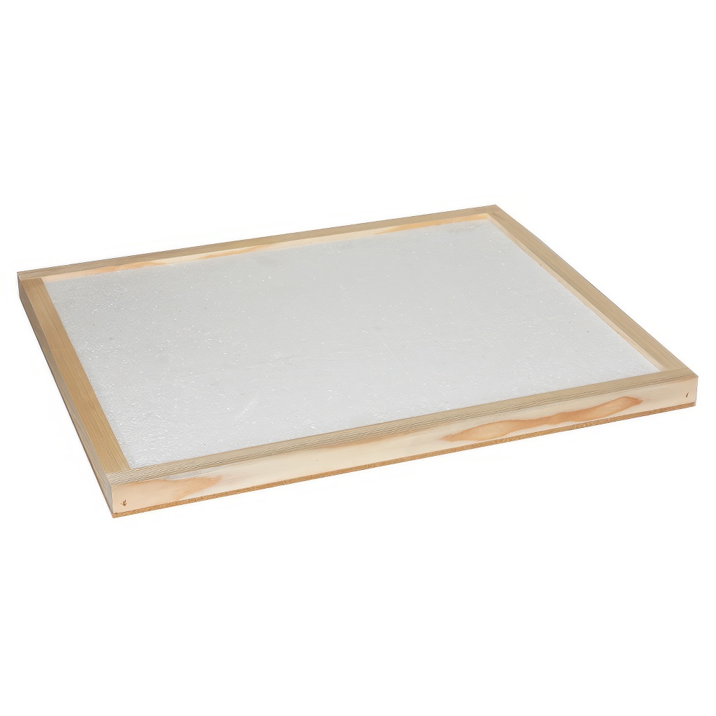Vnitřní víko slouží jako horní uzávěr plodového nebo medníkového prostoru a tvoří izolační bariéru mezi včelstvem a vnější střechou. EPS deska zabraňuje kondenzaci vlhkosti na vnitřní straně střechy a zároveň omezuje únik tepla z včelího chomáče během zimování. Rozměry odpovídají standardnímu nástavku Zander.
