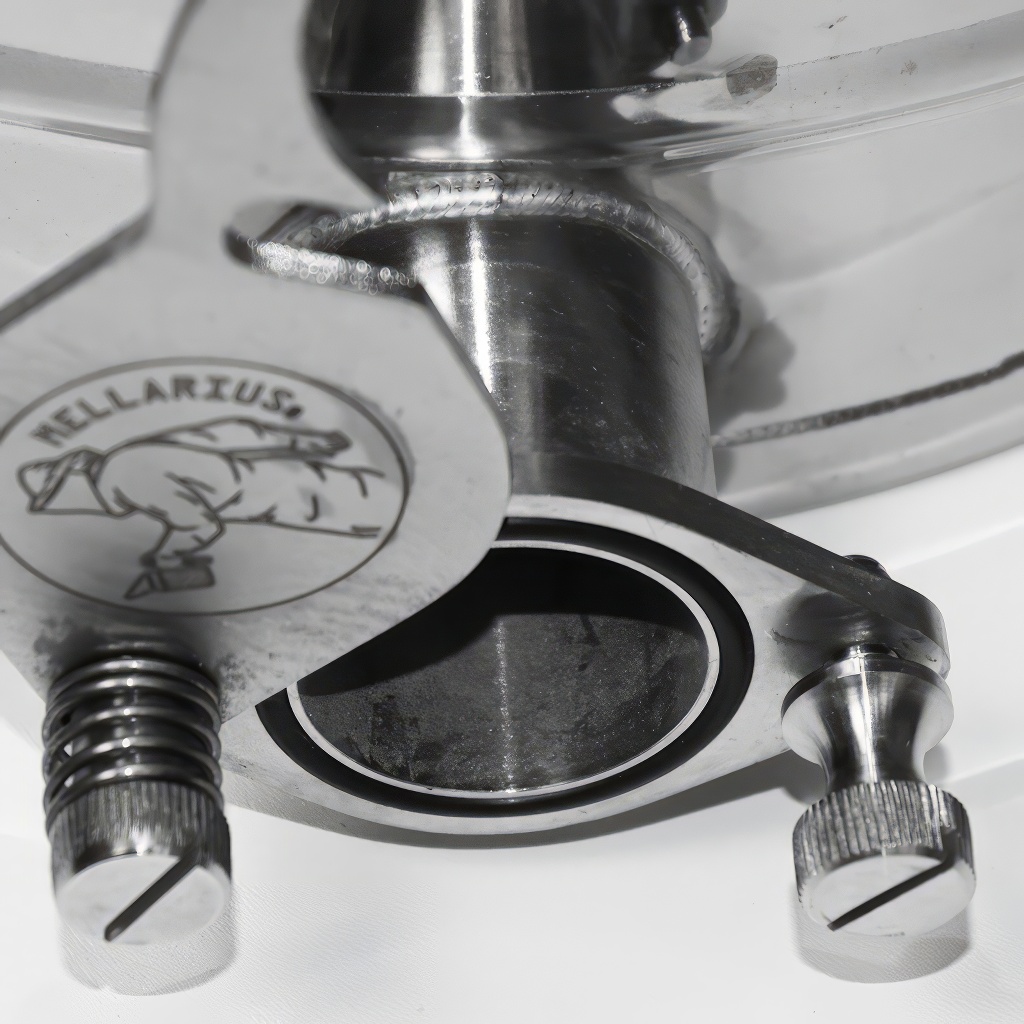 Stáčecí nádoby na med Mellarius řady ProLine jsou opatřeny navařeným nerezovým kohoutem pro maximální pevnost. Poklice je pomocí háčků zajištěna tak, aby při manipulaci s nádobou nespadla. Poklice je principována jako těsnící víko, součástí víka je silikonové těsnění.