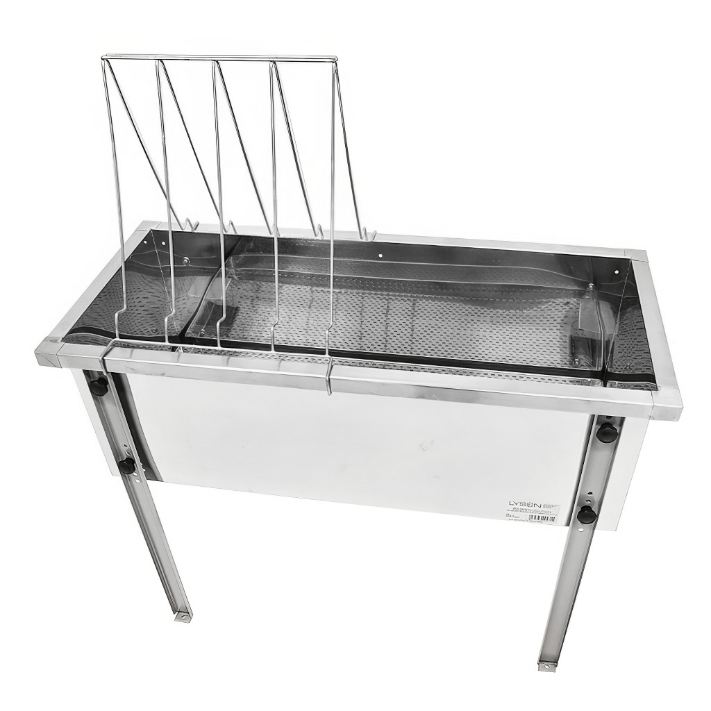 Chcete zrychlit a zpříjemnit práci při medobraní a zároveň mít v medárně pořádek? Nerezový odvíčkovací stůl Lyson o délce 100 cm je promyšlené řešení pro střední i větší chovy včel. Díky délce pracovní plochy na něm pohodlně pracují dva včelaři zároveň – jeden odvíčkuje a druhý průběžně podává či připravuje další rámky. Výsledkem je plynulejší práce bez zbytečných prostojů.