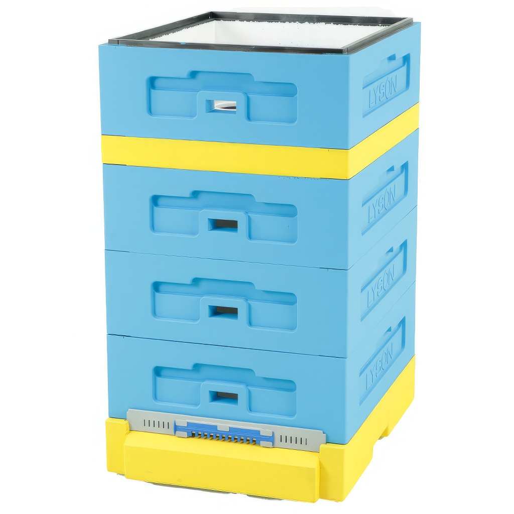 Kompletní sestava úlu Dadant Blatt 1/2 s vysokým dnem je koncipována pro provoz s polovičními medníkovými nástavky. Čtyři nástavky 1/2 umožňují postupné nasazování podle intenzity snůšky a síly včelstva. Vysoké dno s ventilačním prostorem podporuje přirozený odtah vzdušné vlhkosti z plodiště, čímž se částečně kompenzuje neprodyšnost polystyrenu. Termoizolační vlastnosti EPS zajišťují stabilní mikroklima v úlovém prostoru, což příznivě ovlivňuje jarní rozvoj a snižuje energetický výdej včelstva na termoregulaci. Všechny komponenty systému Lysoň jsou vzájemně kompatibilní. Úl je vhodný jak pro stacionární, tak pro kočovný provoz.