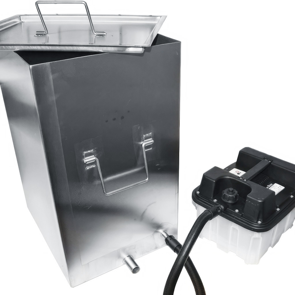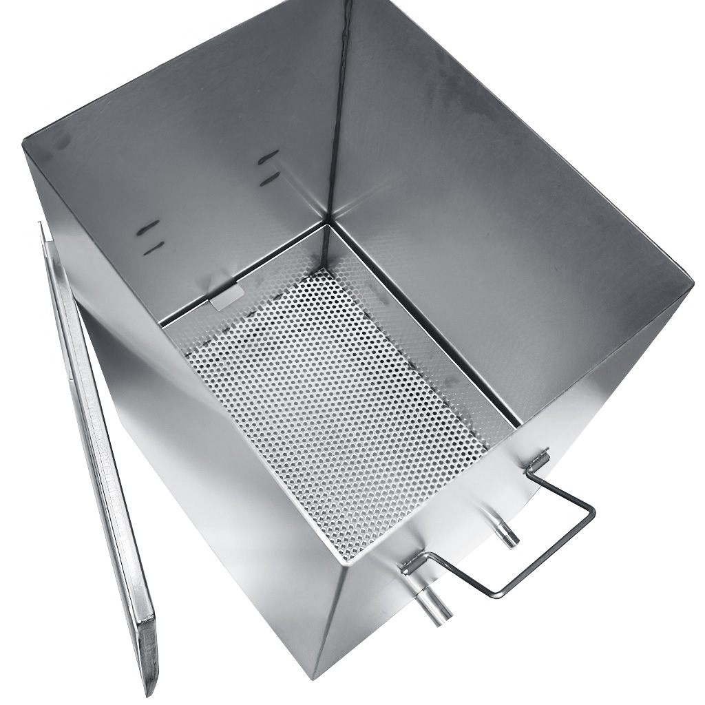 Hledáte spolehlivý, rychlý a úsporný způsob, jak zpracovat staré souše a získat dokonale čistý včelí vosk? Menší tavidlo - vařák na vosk nerez + 1 x vyvíječ páry je ideálním řešením pro každého včelaře, který si chce usnadnit náročnou práci a ušetřit drahocenný čas. Pařák je určen ke snadnému a rychlému vytavení vosku přímo z rámků nebo ze souší použitím vodní páry, kterou vytváří jeden parní vyvíječ (součást vařiče). Parní nerezové tavidlo se skládá z masivní nerezové nádoby a síta na rámky nebo souše.