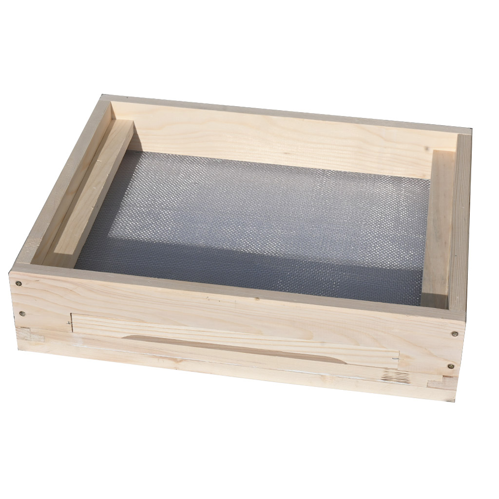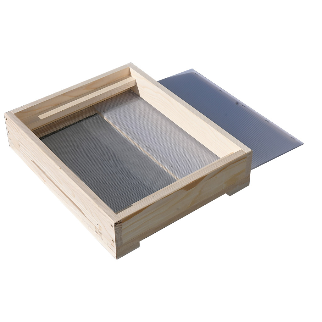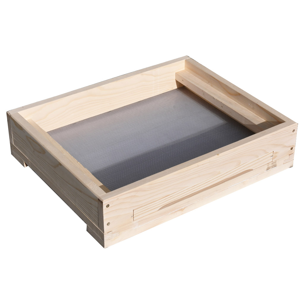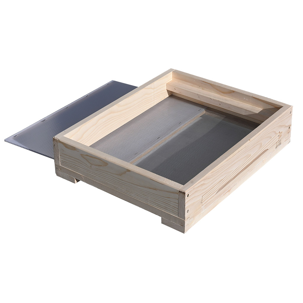 Toto dno je spodní část úlu, na kterou stavíte celý včelí domov. Od běžného dna se liší tím, že má místo plné desky jemnou síťku. Díky ní mohou roztoči, kteří spadnou ze včel, propadnout dolů pryč ze včelstva. Zároveň síťka umožňuje, aby do úlu proudil čerstvý vzduch, což včelám pomáhá lépe regulovat teplotu a vlhkost uvnitř.