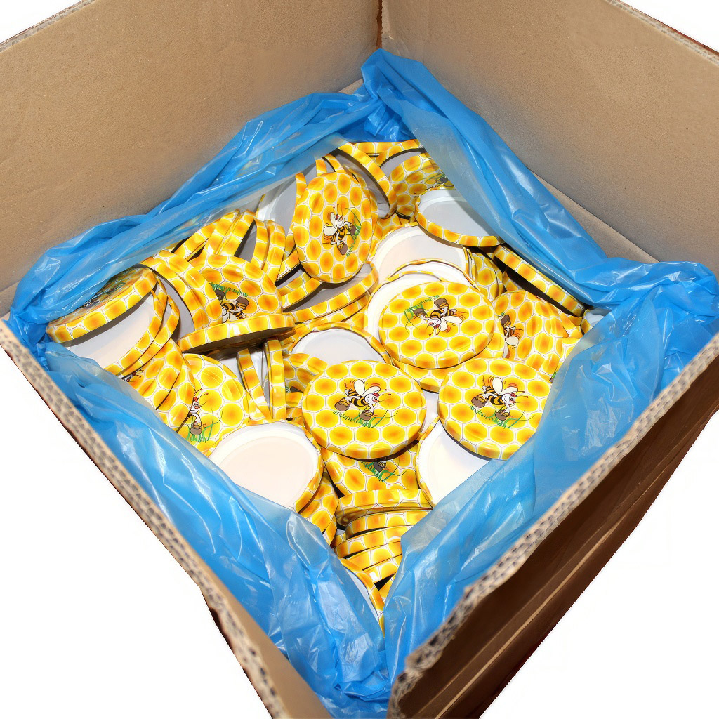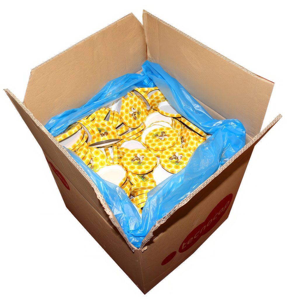 V této krabici dostanete rovnou 700 víček najednou. To se hodí, pokud máte víc úlů a počítáte s tím, že budete plnit desítky nebo stovky sklenic. Navíc vás celá krabice vyjde levněji, než kdybyste víčka kupovali po menších počtech.