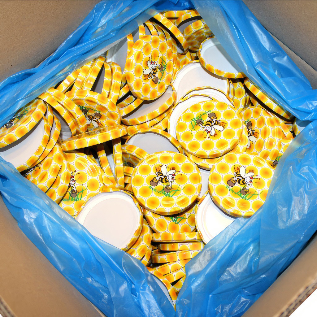 Toto víčko slouží k uzavření sklenic, do kterých si stáčíte svůj med. Funguje na jednoduchém principu – přiložíte ho na sklenici a otočíte. Proto se mu říká šroubovací nebo také „twist-off". Na víčku je nakreslený sympatický včelí trubec Vilík, takže sklenice s medem bude vypadat hezky a profesionálně, ať už med prodáváte, nebo ho rozdáváte rodině a známým.
