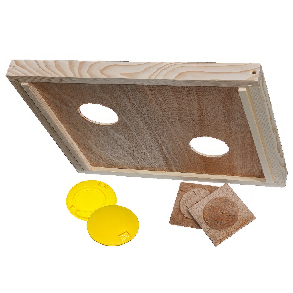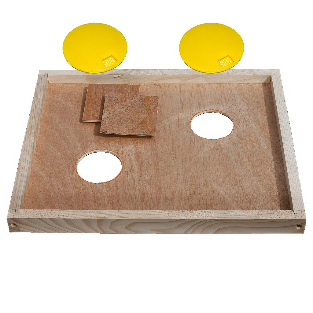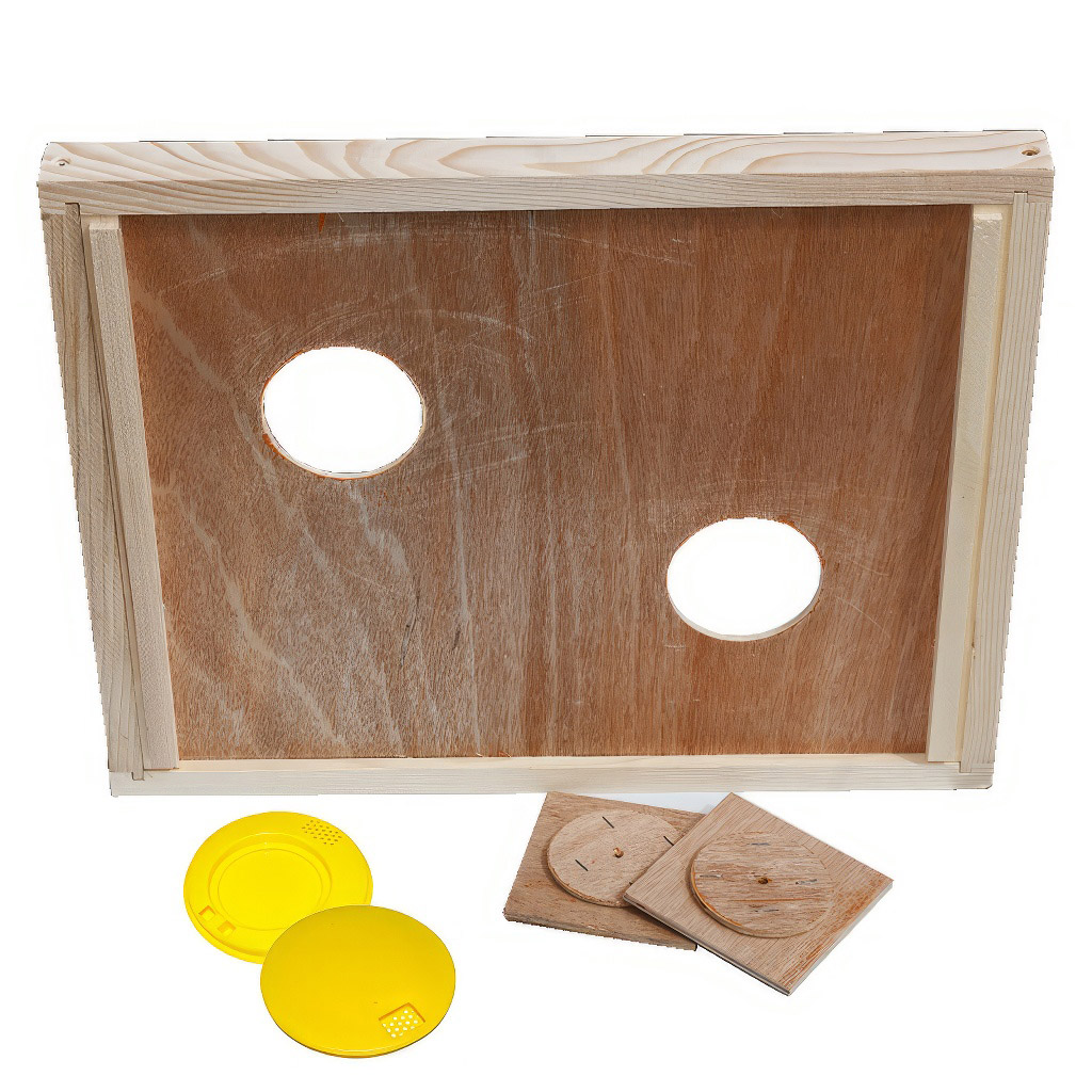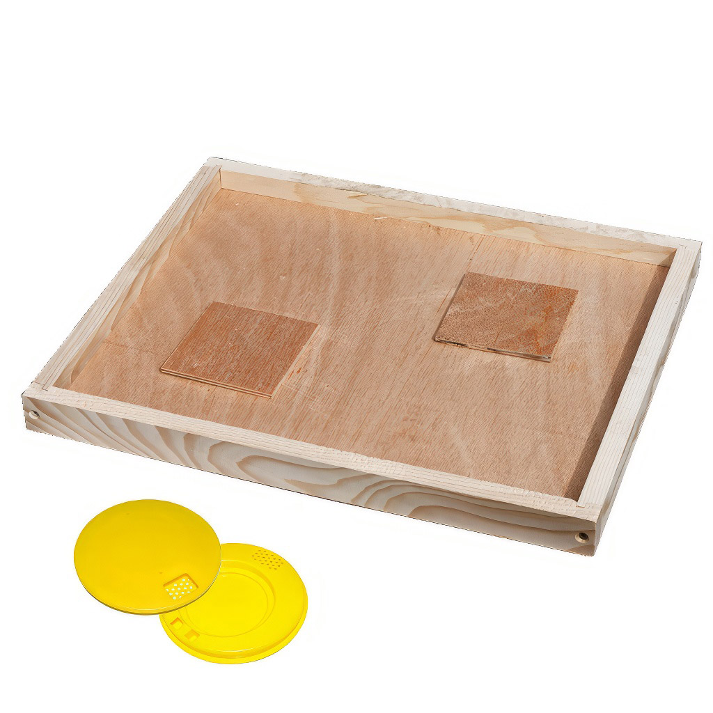 - K čemu slouží přiložené dřevěné kryty?Dřevěné kryty umožňují uzavřít otvory výkluzu, čímž lze mezidno využít i jako vnitřní (krycí) víko úlu. Získáváte tak univerzální pomůcku s více způsoby využití.