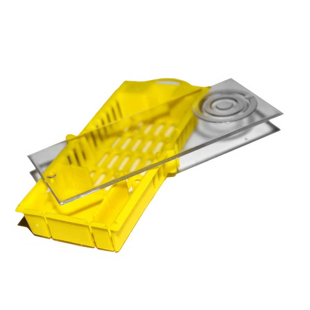 Tato dvoudílná plastová klícka je univerzální pomocník, který oceníte při každém přidávání nebo přepravě matky. Díky tloušťce pouhých 1,5 cm ji bez problémů vsunete do uličky mezi rámky, aniž byste mačkali včely nebo deformovali dílo. Samostatná komůrka na medocukrové těsto zajistí pozvolné uvolnění matky – včely se k ní prokousávají přibližně dva dny, což dává včelstvu čas sjednotit feromonový profil a matku v klidu přijmout. Mřížkovaný povrch umožňuje průběžnou vizuální kontrolu i dostatečnou ventilaci. Klícka zároveň spolehlivě chrání matku při poštovním zasílání nebo převozu. Praktické řešení 2v1, které výrazně zvyšuje úspěšnost přijetí matky.